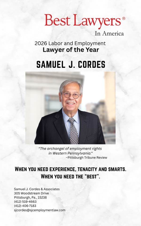 Attorney Samuel J. Cordes has a long, respected and well-publicized history of successful employment law service to people across Pittsburgh and the rest of western Pennsylvania.